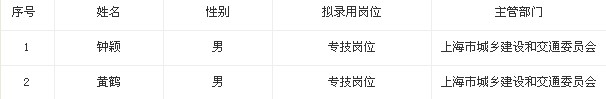 2013年上海市城鄉建設和交通發展研究院擬錄用人員名單公示如下: