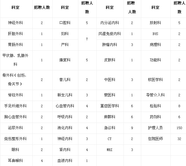 鄂爾多斯市人民醫院各科室擬招聘人數: