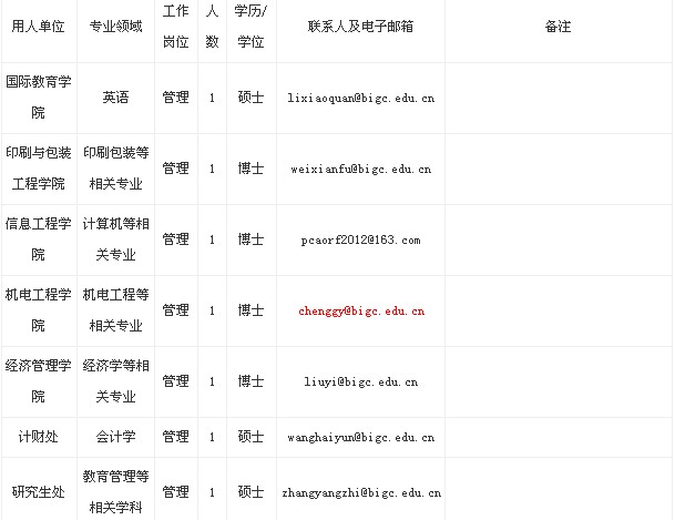 1、網上報名:請應聘人員將電子簡歷和郵件名改為“應聘崗位+姓名”,分別發送至人事處郵箱renshichu@bigc.edu.cn和二級單位公布郵箱。