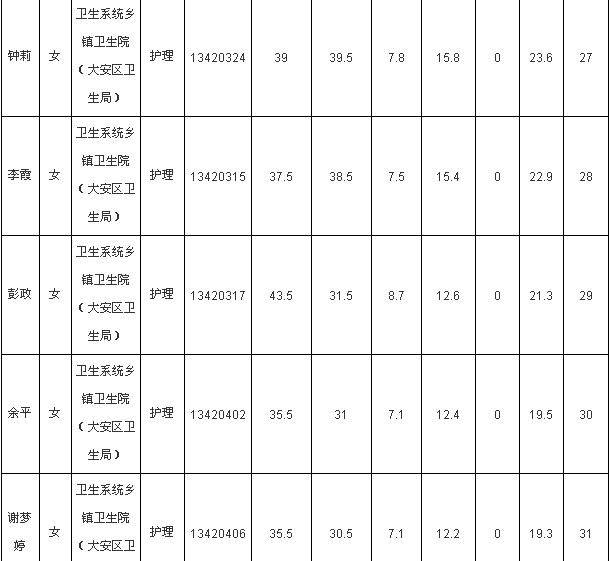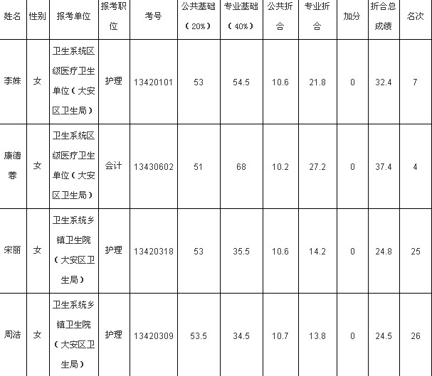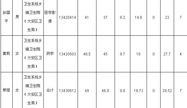 2013年上半年大安區衛生系統事業單位招聘工作人員面試遞補人員名單