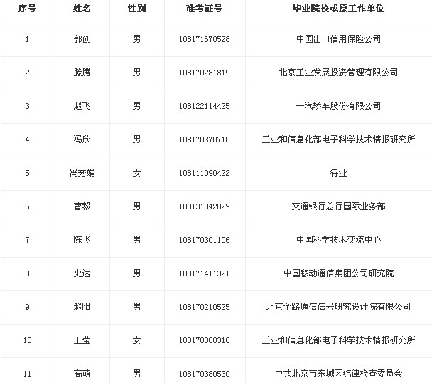 工業(yè)和信息化部2013年度擬錄用公務(wù)員名單