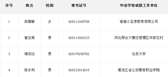 根據(jù)公務(wù)員考試錄用有關(guān)規(guī)定和要求,經(jīng)過公共科目筆試、面試、體檢、考察等程序,經(jīng)研究,擬錄用吳雅靜等4名同志(名單附后)為我會機關(guān)工作人員,現(xiàn)將有關(guān)情況予以公示。公示期間,如有問題,請向全國工商聯(lián)人事部反映。