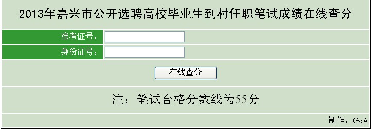 2013年平湖市公開選聘高校畢業生到村任職筆試成績已經公布,現將查詢網址公布如下:http://wsbm.jxkp.com/cgcf/default.aspx