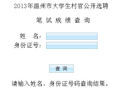 2013年浙江溫州大學(xué)生村官筆試成績查詢系統(tǒng)開通,考生可點(diǎn)擊下面的鏈接進(jìn)行成績查詢。