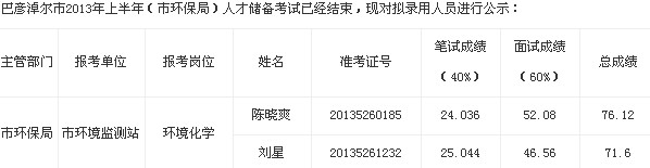 2013年巴彥淖爾市環(huán)保局面試成績及擬錄名單公示
