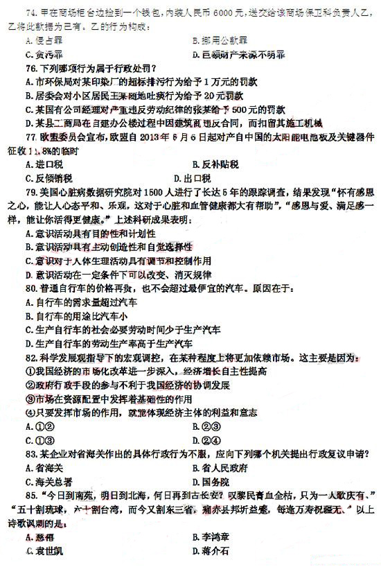 2013年甘肅省公務員考試行測真題