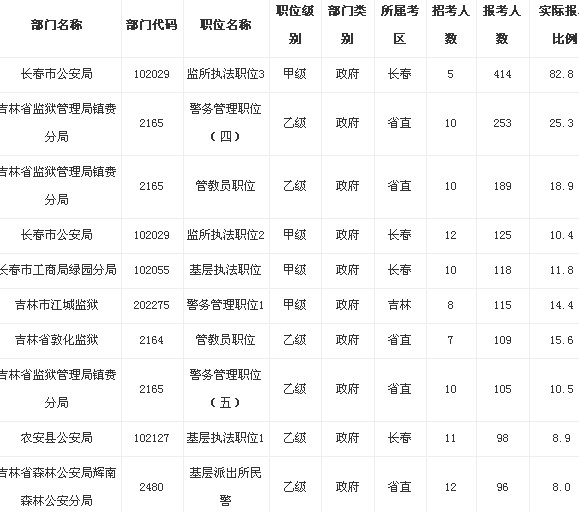 2013年吉林省公務員考試十大報名火熱職位如下: