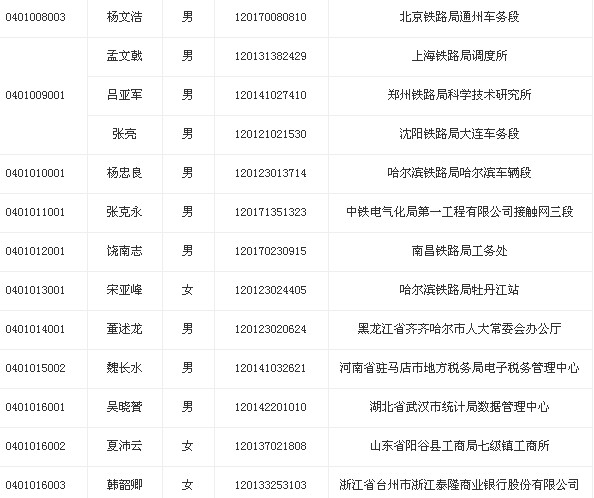 2013年原鐵道部擬錄用人員公示