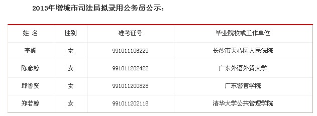 摘要 2013年廣東增城市司法局擬錄用公務員公示