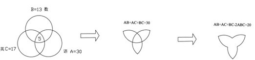 【解法1】文氏圖與三集合標(biāo)準(zhǔn)型公式相結(jié)合。