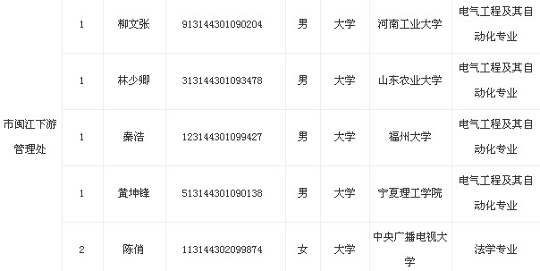 摘要 2013年福建福州市水利局擬錄用公務員名單公示