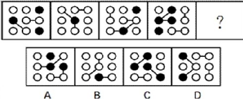 例四 【2010-國家-56】從所給的四個選項中,選擇最合適的一個填入問號處,使之呈現一定的規律性( )