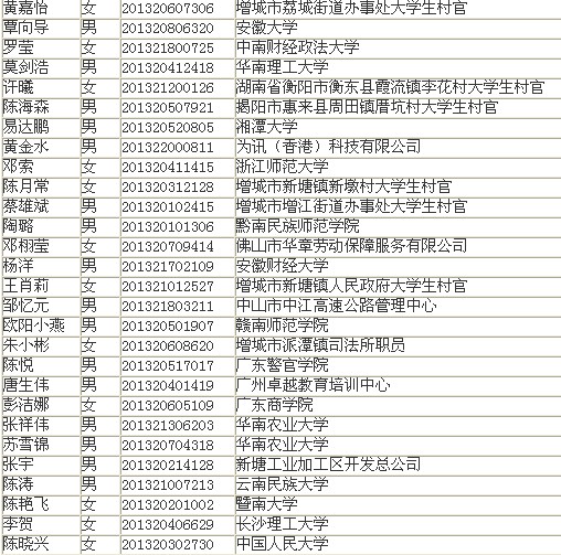2013年廣東廣州增城市擬錄用公務(wù)員公示如下: