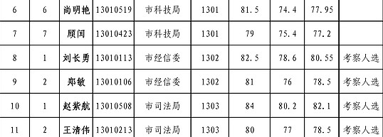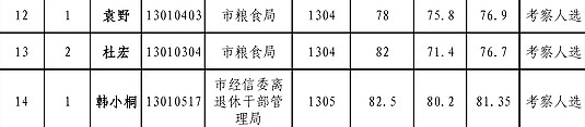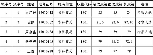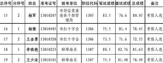 2013年安徽蚌埠市直行政機關公務員總成績如下: