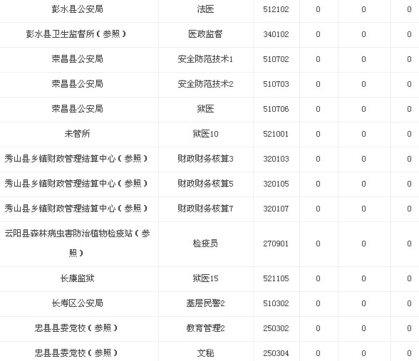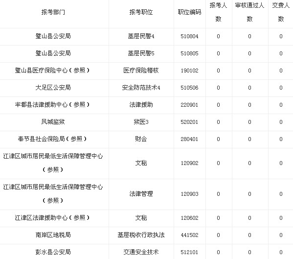 2013年下半年重慶公務(wù)員考試無人報(bào)名崗位統(tǒng)計(jì)如下: