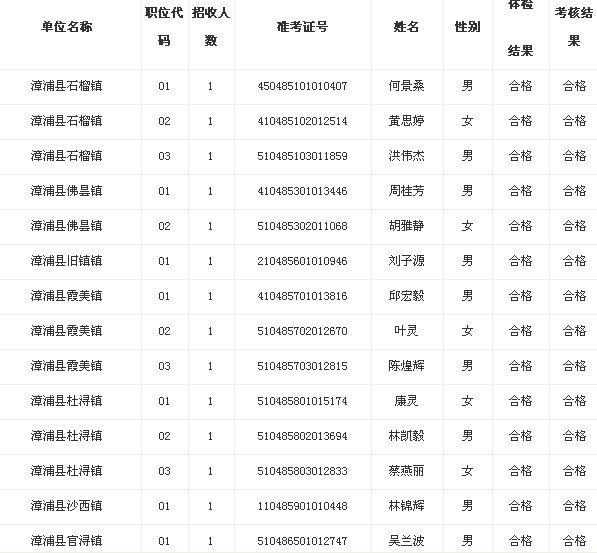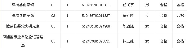 2013年福建漳州市黨群系統擬錄用公務員名單公示(五)