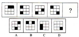 答案:A 解析:本題屬于位置類,主要考察平移。左側小黑格沿著外層依次逆時針移動3格,右側小黑格沿著外層依次逆時針移動2格。所以選擇A選項。