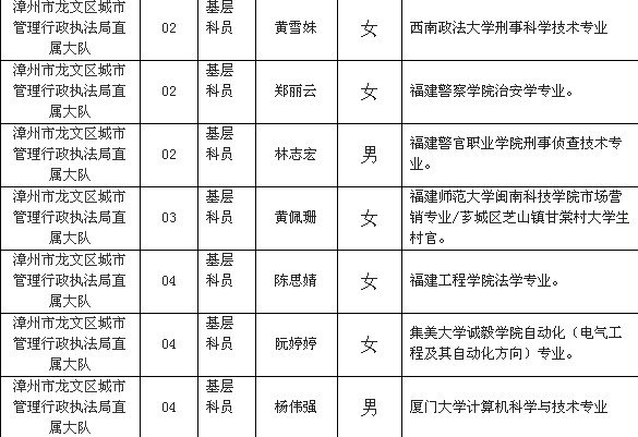摘要 2013年福建漳州擬錄用公務員名單公示(五)