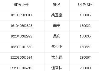 摘要 2013年福建安慶市公務員遞補體檢名單