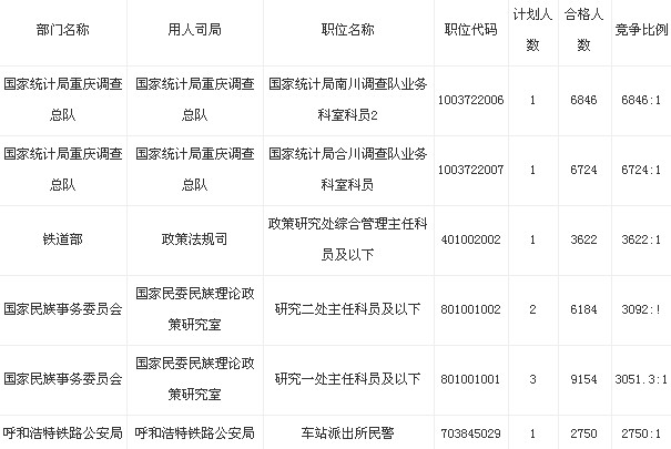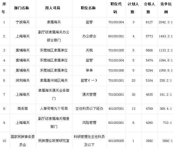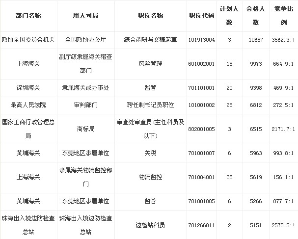 摘要 2011年至2013年國家公務員考試十大熱門職位