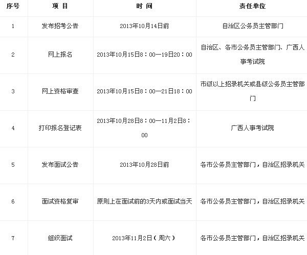 摘要 2013年廣西省公務員(選調生)補錄時間安排表