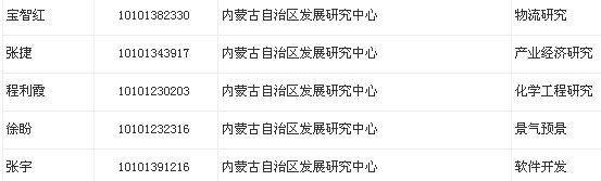 根據《內蒙古自治區黨政群機關和參照公務員法管理單位2012年考試錄用公務員和工作人員簡章》,經過筆試、面試、體檢、考察,現對自治區發展研究中心擬錄用人員予以公示: