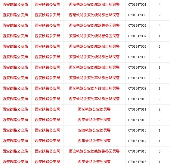 2014年國家公務員考試西安鐵路公安局職位表公布如下: