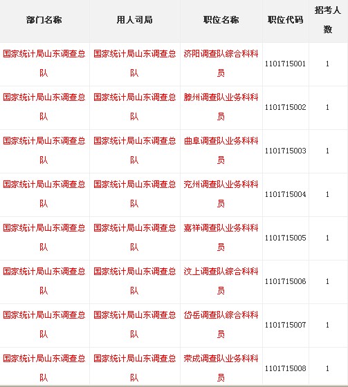 2014年國家公務(wù)員考試職位表(國統(tǒng)局山東調(diào)查總隊)