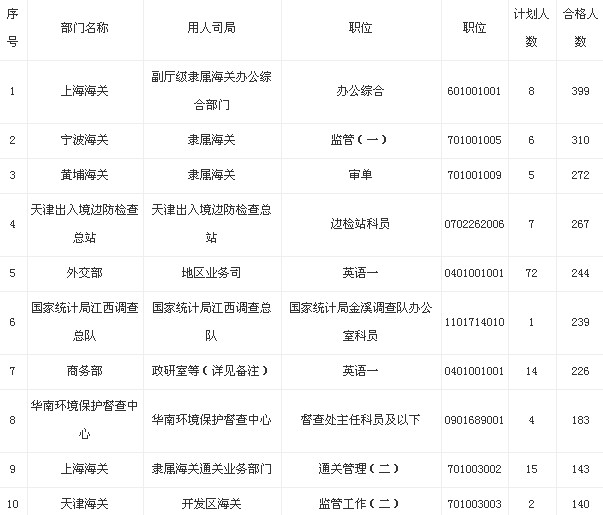 2014年國家公務(wù)員考試江西報名人數(shù)前十職位(10月17日)
