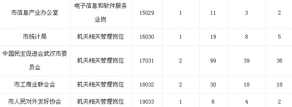 截止到10月21日上午9點,2013年湖北武漢市直機關公務員報名人數統計如下: