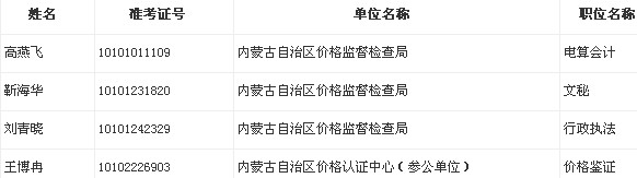 根據(jù)《內(nèi)蒙古自治區(qū)黨政群機關和參照公務員法管理單位2012年考試錄用公務員和工作人員簡章》,經(jīng)過筆試、面試、體檢、考察,現(xiàn)對內(nèi)蒙古發(fā)展和改革委員會擬錄用人員予以公示: