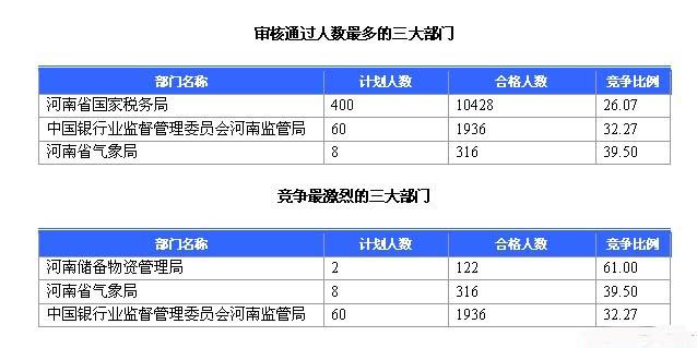 摘要 截止22日8時,通過審核人數前三位的部門依次是:河南稅務局、中國銀行業監督管理委員會河南監管局、河南省氣象局,三部門通過審核總人數達12680人,占通過審核總人數的99%