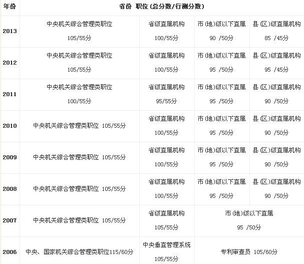 摘要 2004年―2013年國家公務員考試合格分數線匯總