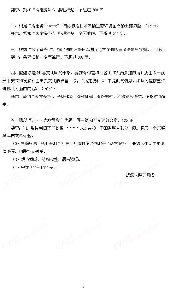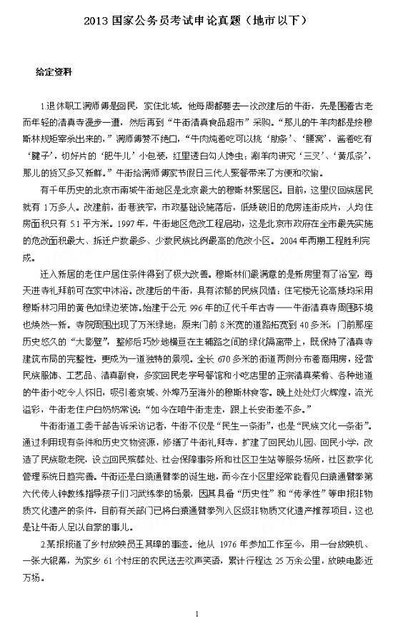 2013年國家公務員考試申論真題(省級+地市)