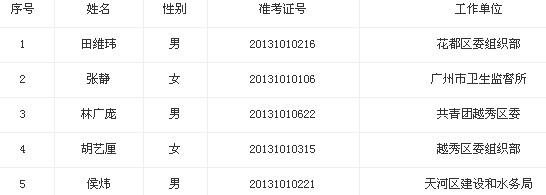 2013年廣東廣州市委組織部選調公務員錄用名單公示