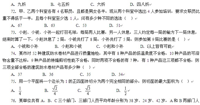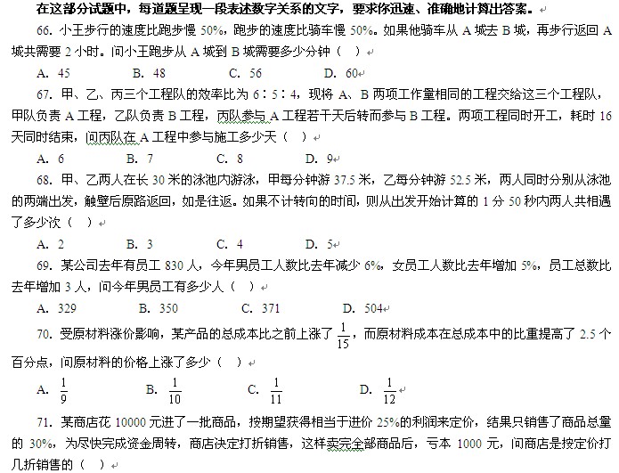 摘要 2011年國家公務員考試行測真題:數量關系