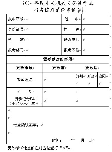 2014年國考報名信息更改申請表