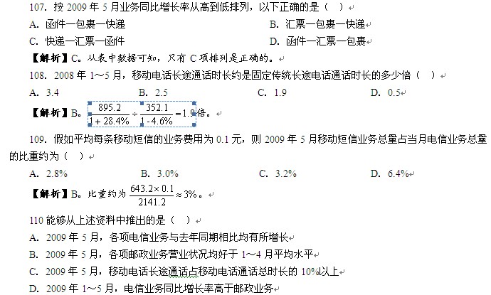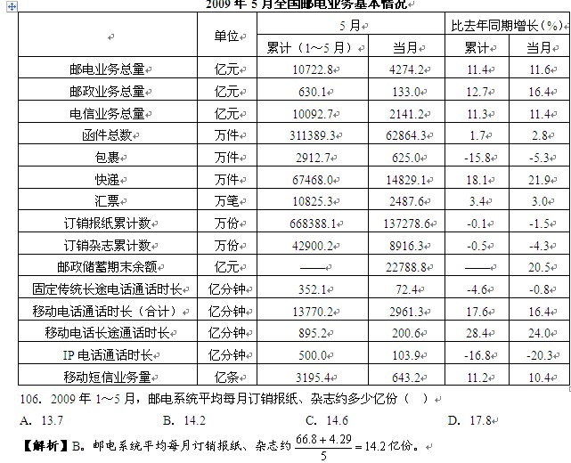 【解析】B。從表中可以看出,有些電信業務相比于去年同期是有所下降的,如包裹業務,A項錯誤;