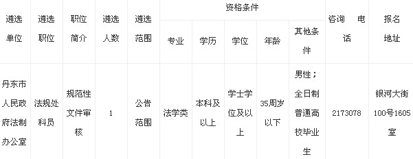 2013年遼寧丹東市政府機關公務員新增職位公告
