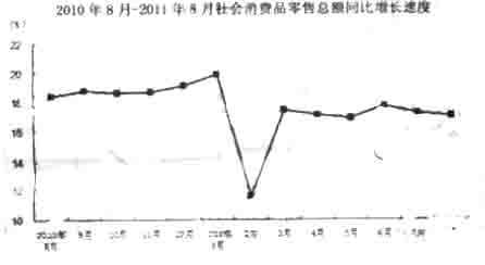 2011年8月份,社會消費品零售總額14705億元,同比增長17.0%。其中,限額以上企業(單位)消費品零售額6902億元,增長22.1%。1--8月份,社會消費品零售總額114946億元,同比增長16.9%。從環比看,8月份社會消費品零售總額增長1.36%。