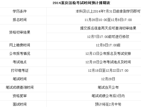 摘要 2014年重慶法檢考試報名時間為11月28日至12月8日。