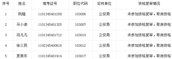 摘要 2013年安徽省馬鞍山市政法干警部分考生因未參加資格復審,取消資格名單公布。