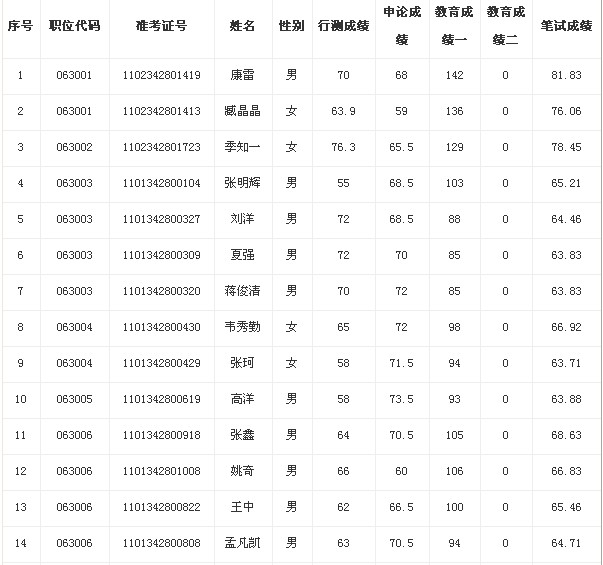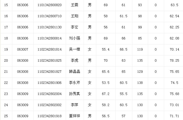 摘要 2013年安徽阜陽政法干警體側合格名單通知