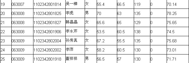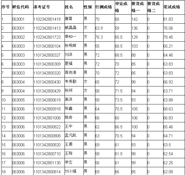 2013年安徽阜陽市政法干警體測合格名單如下: