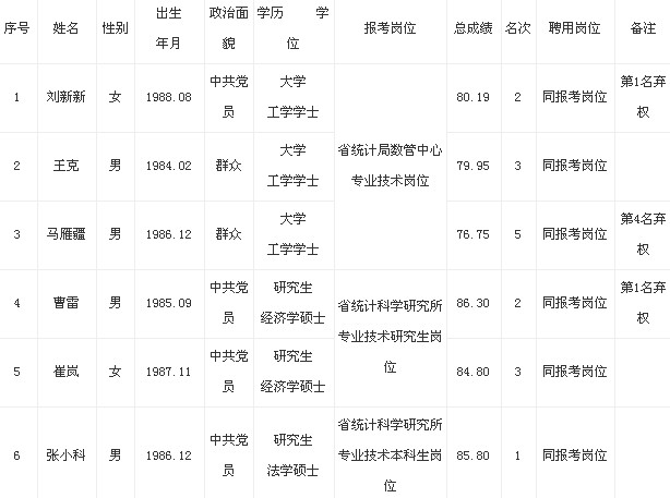 河南省統(tǒng)計(jì)局局屬事業(yè)單位公開招聘擬聘用人員名冊表