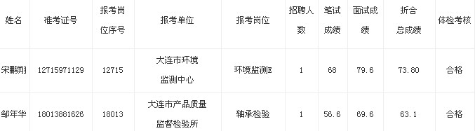 2013年遼寧省大連市事業單位招聘擬聘用人員補充公示
