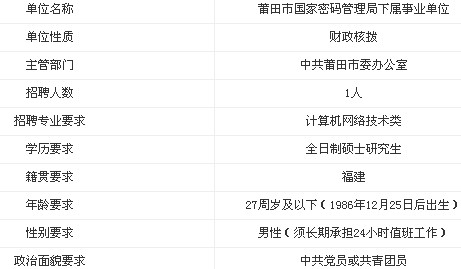 為貫徹落實人才強市戰略,積極吸引高層次高校畢業生到本辦下屬事業單位就業,根據事業單位聘用研究生及以上學歷工作人員的有關規定,經研究,現將本辦管理的莆田市國家密碼管理局下屬事業單位招聘碩士研究生有關事項公告如下: