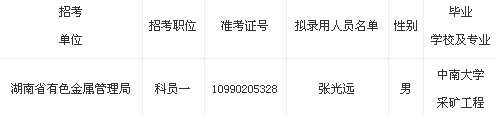 2013年湖南省有色金屬管理局考錄公務員名單公示
