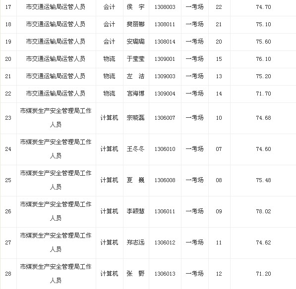 2013年黑龍江省雙鴨山市事業(yè)單位面試成績(jī)公布如下: