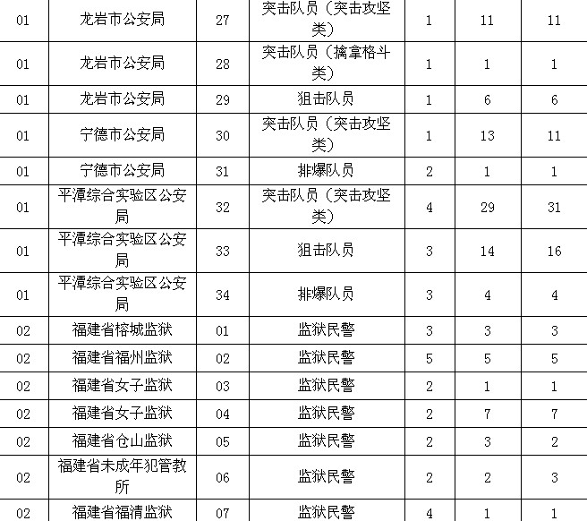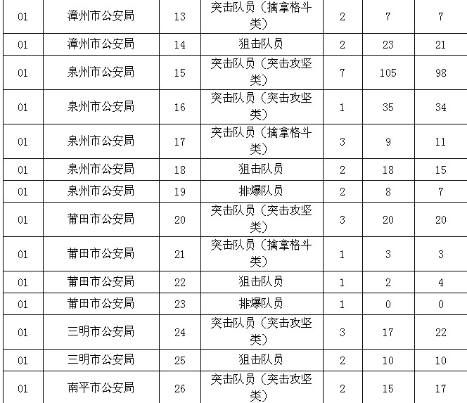 根據《福建省2013年度面向特殊技能人才考試錄用人民警察的公告》要求,現將各職位調劑后報名情況公布如下:
